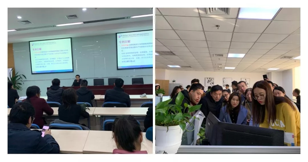 中心社會服務工作組樊江波帶領學員們參觀知識產權事業發展史館、中心展館、審查員辦公室,講述中國知識產權事業發展史、審協河南中心發展歷程和發展現狀;參觀結束,中心專利審查員趙艷輝圍繞“專利信息分析與應用”主題為學員們授課,他通過圖文詳解、真實案例生動具體的講述了專利信息分析、專利信息應用、中心專利信息應用成果三方面主要內容。