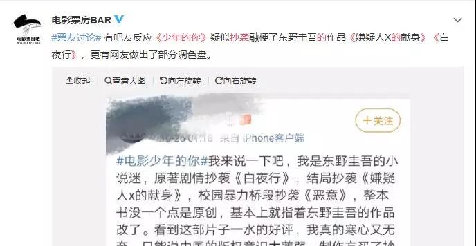 熱搜的關鍵詞就有了,《少年的你》被爆出抄襲這一個話題: