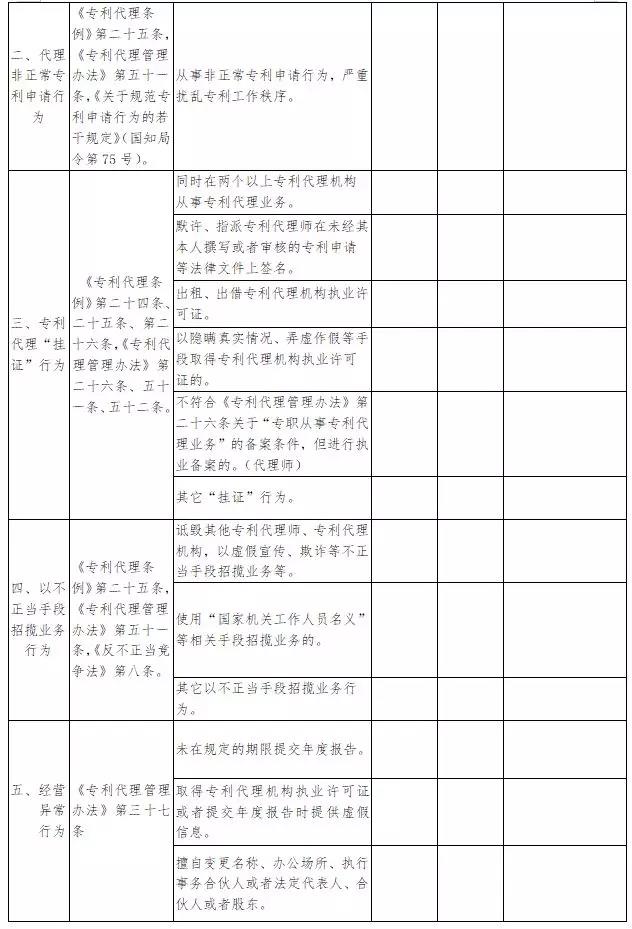 附:“藍天”專項整治行動專利代理機構自查表