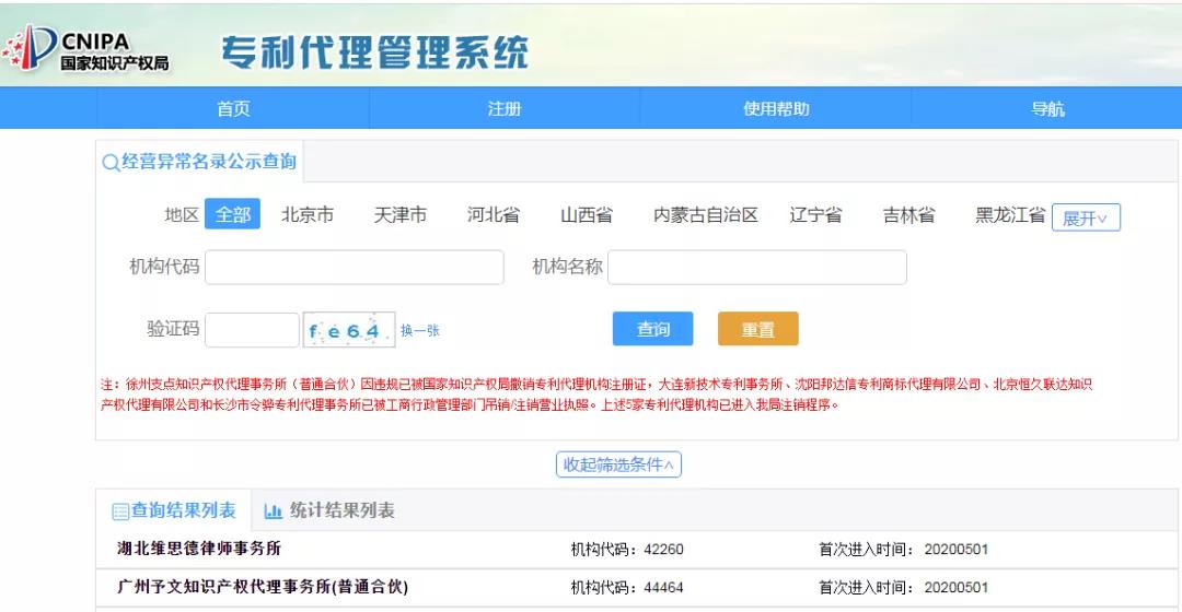 根據《專利代理管理辦法》第三十七條規定 專利代理機構有下列情形之一的,按照國家有關規定列入經營異常名錄: