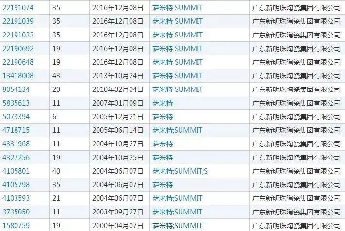 所幸,新明珠陶瓷集團雖然沒有注冊“薩米特”商標,但早在蘇益和搶注商標之前,對設計完成的“薩米特”商標圖形進行了版權登記,并獲得版權登記證書。新明珠陶瓷集團以蘇益和注冊的商標侵犯了其在先版權,向國家商標局提出異議,提交了其登記的薩米特圖形的版權證書作為證據,證明新明珠在蘇益申請商標前,已獲得薩米特圖形的版權。最終,蘇益和所注冊的薩米特商標被撤銷。之后,新明珠陶瓷集團分別在第6類、第11類、第19類、第20類、第21類、第35類、第40類、第43類上申請注冊“薩米特SUMMIT及圖”商標,以保護商標合法權益。
