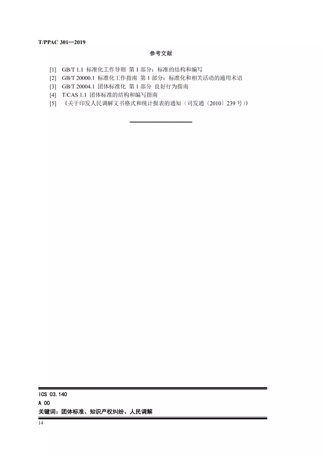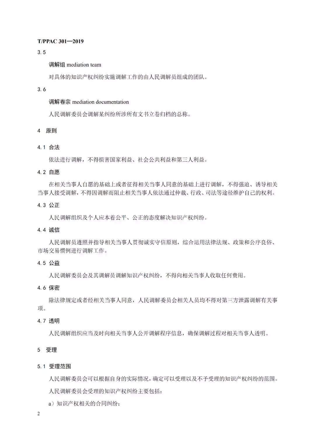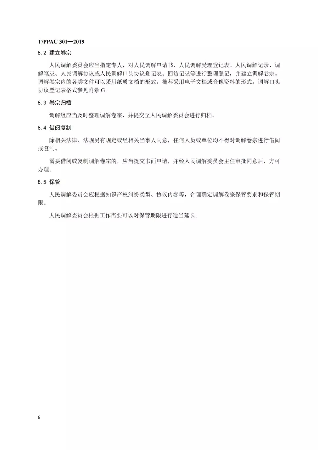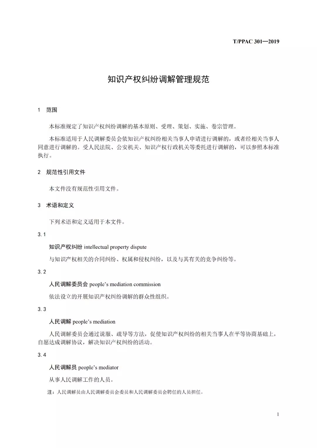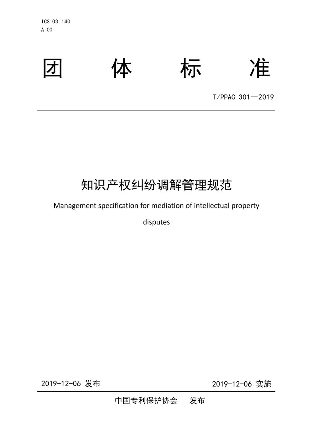 T/PPAC 301-2019 知識產權糾紛調解管理規范