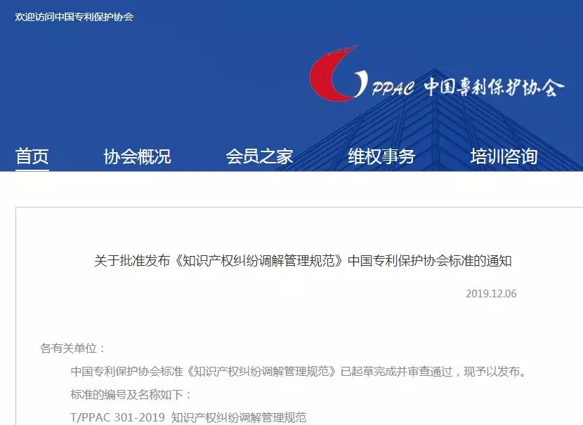 中國專利保護協會標準《知識產權糾紛調解管理規范》已起草完成并審查通過,現予以發布。