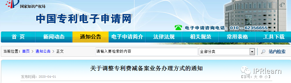 關于調整專利費減備案業務辦理方式的通知